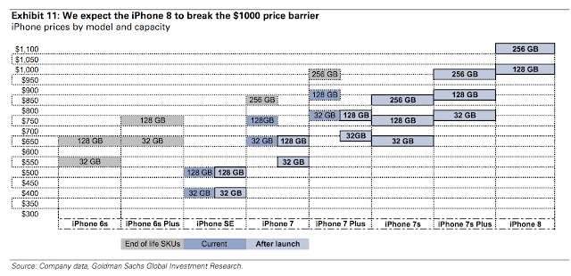 وفقا لتوقعات المؤسسة المصرفية الأمريكية غولدمان ساكس (Goldman Sachs) ، فإن الهاتف القادم من آبل قد يكون أغلى هاتف ستقدمه الشركة لزبنائها لحدود الساعة.